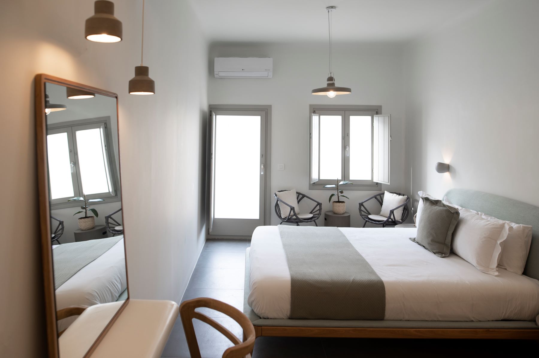 Designed with attention to detail, with traditional and modern elements of Cycladic architecture, earthy tones, the Alpha Village View Room for 2 guests of MOD Santorini offers a peek into the neighboring Fira and the locals’ daily living for an immersive experience in serenity, calmness and authentic island lifestyle.