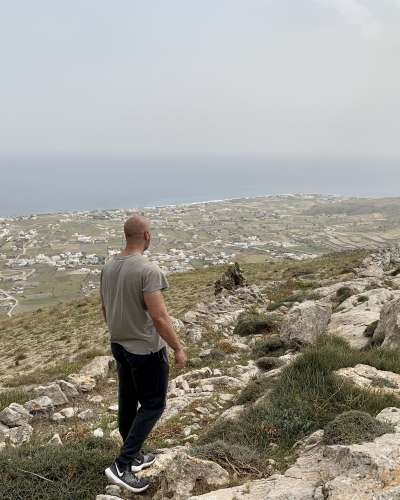 Growing up on the island, life was beautifully simple. While Santorini continued to evolve to meet the demands of tourism, local life remained grounded in simplicity. My father, who founded the hotel in the 1980s, grew up with very little — just his guitar and a genuine love for welcoming people. He opened his doors with warmth and openness, creating connections that went far beyond accommodation.